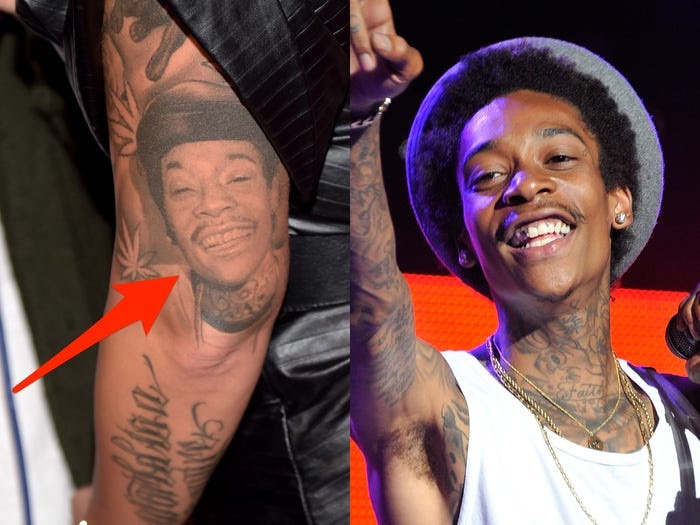 Amber Rose once got a tattoo of Wiz Khalifa's face drawn on the back of her hand, the duo got married and were together for about three years before they split.